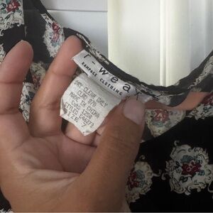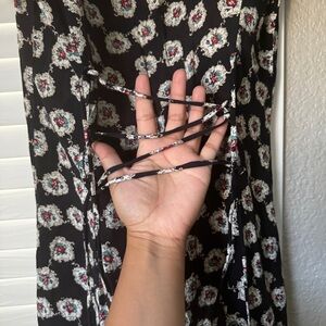 Elegant Rampage dress featuring a black base with floral accents. Ideal for stylish outings. Intricate back tie for adjusting waist