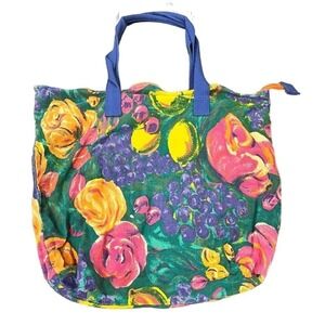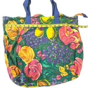VINTAGE Floral Fruit Tote Bag Shopping Blue Pink Orange