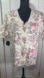 Charming floral blouse with lace trim. Features pink, cream, and green hues.