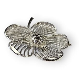 VINTAGE Flower Brooch Mod Hippie Silver Tone Open Work Retro Floral 1.75" Long