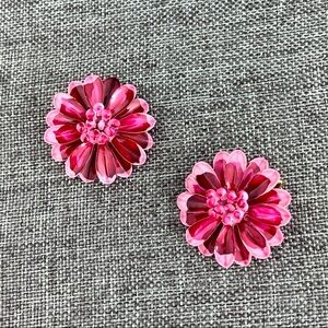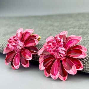 VINTAGE Flower Power Earrings Pink Magenta 60s Floral Summer