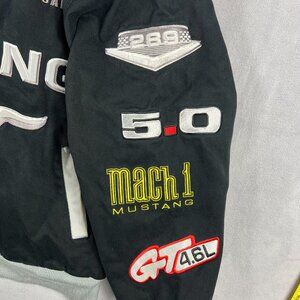 Sleeve details: Embroidered/patch graphics including 289, 5.0, Mach 1 Mustang, GT, 4.6L, Boss 351 Mustang, Cobra