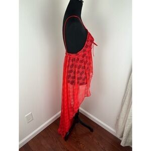 VINTAGE Frederick's of Hollywood Hi-Low Lipstick Red Sheer Nightgown