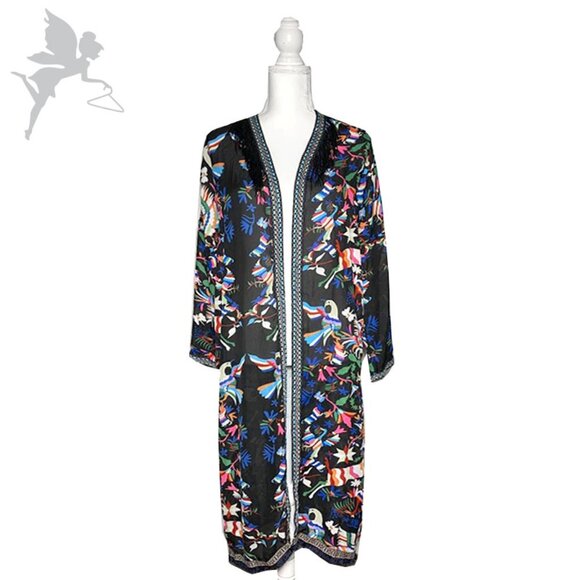 VINTAGE Fringe bird print maxi duster