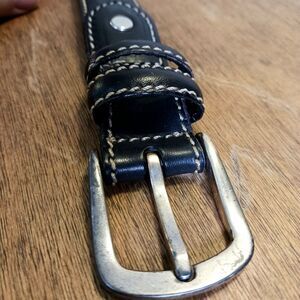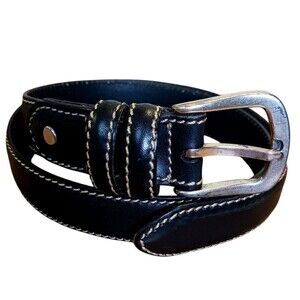 VINTAGE GAP Black Leather Belt Contrast Ivory Stitching Silver Buckle Size M 34