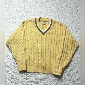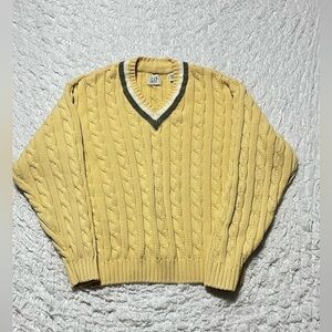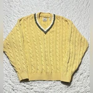 VINTAGE GAP V NECK SWEATER Y2K 3D CABLE KNIT, YELLOW SIZE L