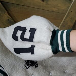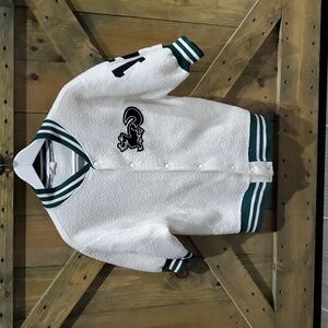 Gators, No size tag, measures 20 inches across the chest when laying flat from pit to pit, Estimated as medium, snap closure, all hardware present number 12 on sleeve super flipping cute