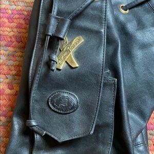 EUC. Pretty much like new. Black leather with gold hardware. Daniella bag. Adjustable strap. Front velcro pocket. Approx 9”x6” x 12”