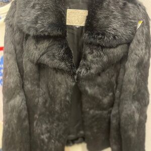 VINTAGE GENUINE RABBIT FURRIER BLACK JACKET