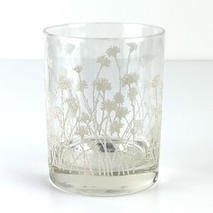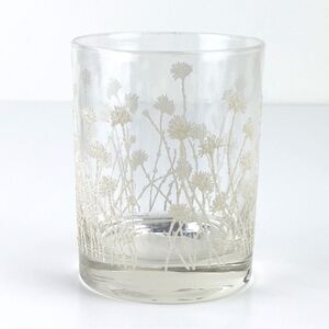 One Georges Briard Textured White Flower Highball Whiskey Cocktail Glass Vintage Circa mid-century Measure 4 1/4" tall; 3 1/8" rim diameter Flowers are raised/embossed