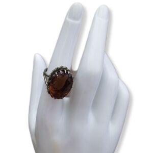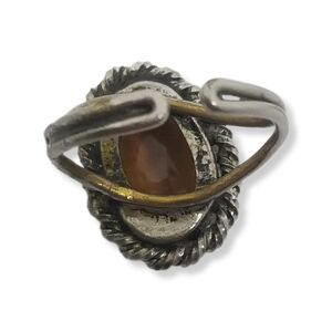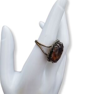 VINTAGE GERMAN ARTISAN MADE SILVERPLATED BRASS & AMBER COLOR GLASS STONE RING