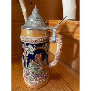 VINTAGE GERMAN LIDDED TALL BEER MUG STEIN