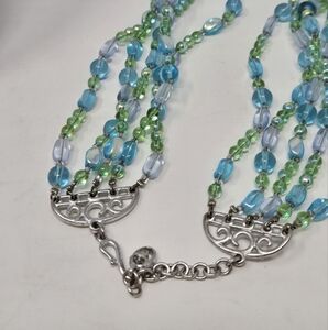 VINTAGE GIVENCHY FIVE STRAND BLUE GREEN GLASS BEAD NECKLACE SIGNED WOMEN JEWELRY