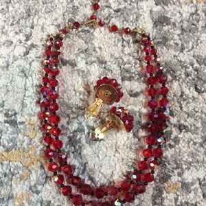VINTAGE GLASS BEAD NECKLACE AND CLIP ON EARRINGS SET! EUC!