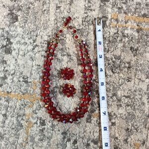 VINTAGE GLASS BEAD NECKLACE AND EARRINGS! EUC!