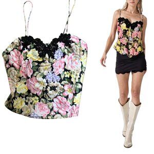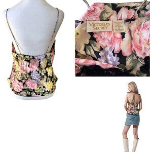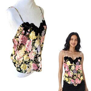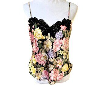 VINTAGE GOLD LABEL VICTORIAS SECRET FLORAL LACE CAMI TANK MEDIUM EUC