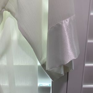Vintage gold label Victoria’s Secret cream robe with satin tie and satin trim around shawl collar and at sleeve edges. Has one small spot on front that I have not tried to remove. Other than that this is spectacular. A good deal for collectors. One size fits all