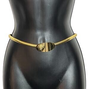 VINTAGE GOLD LION HEAD BELT 1970s 1980s STRETCH OMEGA CHAIN SIZE M VGUC RETRO