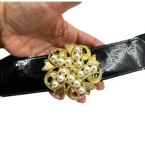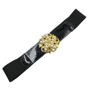VINTAGE GOLD & PEARL STRETCH BELT 1970s 1990s RETRO ELASTIC WIDE CHUNKY SIZE M