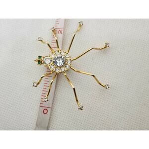 Add a touch of vintage charm to your look with this eye-catching gold-tone spider brooch! This 3D brooch features sparkling white rhinestones that catch the light beautifully.