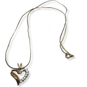 VINTAGE GOLDPLATE BRASS OPEN HEART CRYSTAL PENDANT ON SERPENTINE CHAIN NECKLACE