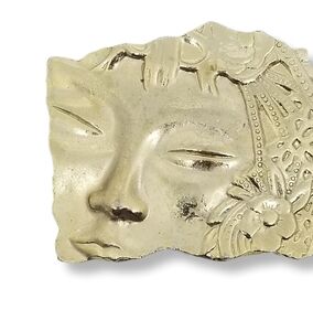 VINTAGE GOLDTONE ASIAN GEISHA FACE ABSTRACT DESIGN BROOCH