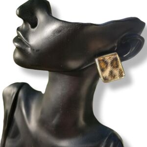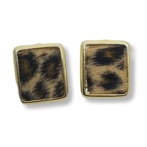 Vintage goldtoned metal statement earrings detailed with chettah print faux fur. Earrings have stud backs and they measure 1 inch tall and 7/8 inch wide. Great condition.
