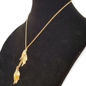 VINTAGE GOLDTONED SNAKE CHAIN & GOLD LEAF PENDANT DROP NECKLACE