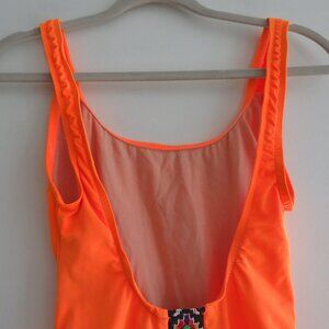 VINTAGE GOTCHA 90s Neon Orange Aztec Embroidered Open Back Swimsuit - Size S