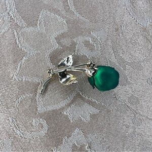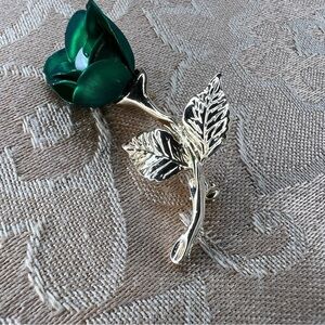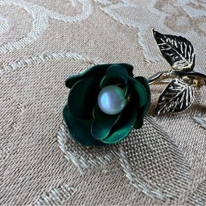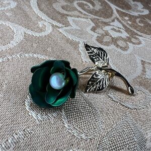 VINTAGE GREEN GOLD BROOCH FLORAL PEARL ACCENT RETRO PINUP GIFT GLAM