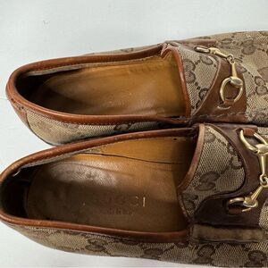 VINTAGE GUCCI BROWN GG MONOGRAM CANVAS LOAFERS size 8.5.