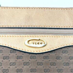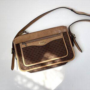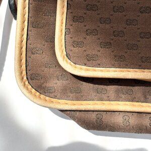VINTAGE GUCCI Brown Leather & Canvas Crossbody Classic 1970's Purse / Clutch