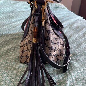 VINTAGE GUCCI NAVY CROSSBODY BAG WITH FRINGE TASSEL