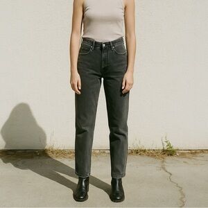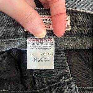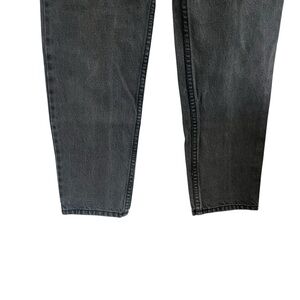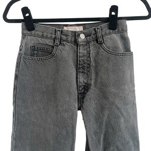 VINTAGE GUESS 90s Georges Marciano High Waisted Straight Leg Mom Jeans. 39101K. Cropped length. Washed black/charcoal gray. Classic high-waisted straight-leg fit with sturdy 100% cotton denim, brass zipper with Guess logo pull, and signature triangle logo patch on back pocket. Made in Mexico, authentic Georges Marciano design. Timeless retro style that flatters every figure. Marked a size 14 - MUCH smaller and measures like a modern 24. See measurements.