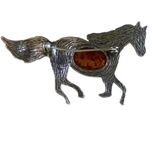 VINTAGE Galloping Horse Brooch with Amber Belly OS