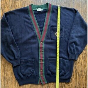VINTAGE Gap Cardigan Men Large Blue Metal Button Tennis Preppy Crest Sweater 90s