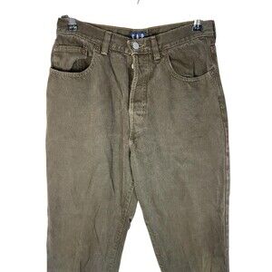 Crafted with a nod to classic style, these vintage Gap jeans embody the quintessential 90s fashion with a high-rise waist that flatters and a comfortable fit that feels like a well-worn favorite. The solid green hue is versatile, making these jeans a perfect base for countless looks, from casual to chic.