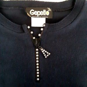 **VINTAGE- Gepetto Womens Rhinestone Studded Navy Blue Pullover Sweater Size XL