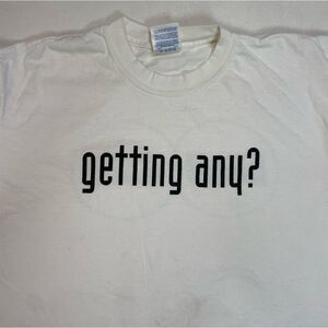 VINTAGE Getting Any Blind Date Graphic T-shirt Men Large White Short Sleeve