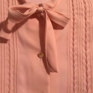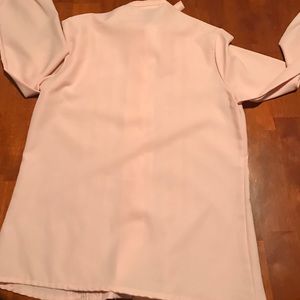 Like new pussy bow blouse, cute ruffled details in front, pearled pink buttons in front and one on each sleeve end. Size is a vintage 32 (fits a extra small-small). No wear on it whatsoever!