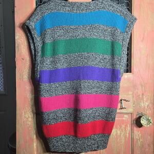 VINTAGE Gitano Womens Medium Rainbow Striped Sweater Vest Gray Primary Stripes