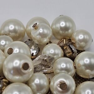 Vintage statement bracelet. Each individual glass pearl and rhinestone has articulation. Attached to a felt backing with gold-tone hardware. Toggle clasp close. Measures about 8" long. Purchased from an estate and no visible maker's mark. Excellent condition and smoke-free home.