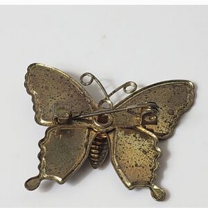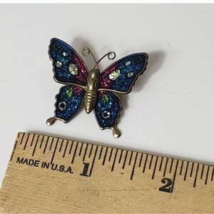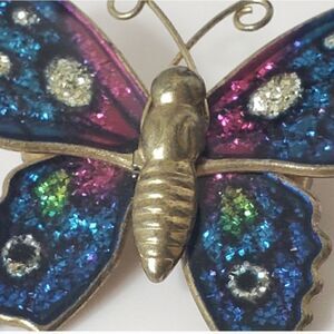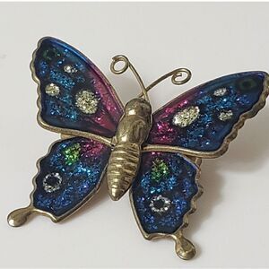VINTAGE Glitter Enameled Brass Butterfly Brooch Pin