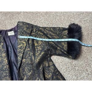 VINTAGE Gold & Black Brocade CLARALURA CALIFORNIA, FUR TRIMMED jacket