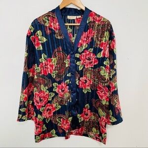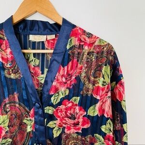 VINTAGE | Gold Label Victoria’s Secret Sheer Satin Floral Button Down Long Sleeve Robe House Coat Night Dress