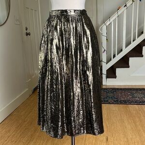 VINTAGE Gold Metallic Pleated Midi Skirt Size Small