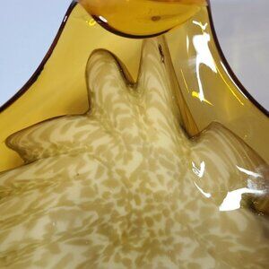 VINTAGE Gold White Swirl MidCentury Art Glass Dish