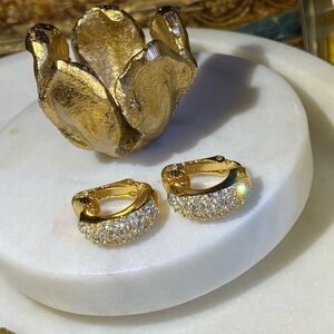 VINTAGE Gold tone and crystal huggie clip on earrings