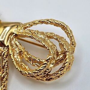 VINTAGE Gold-Tone Twisted Tassel Bow Brooch Pin