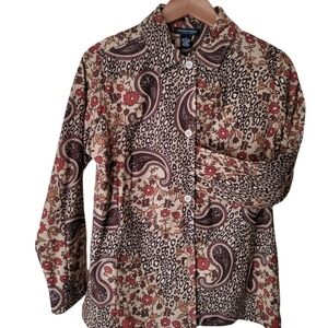 **VINTAGE** Goodclothes collections BOHO paisley button-down tunic/shirt, long sleeves, polyester/spandex blend, tunic, button-down shirt, or light over coat/jacket, previously owned, excellent condition